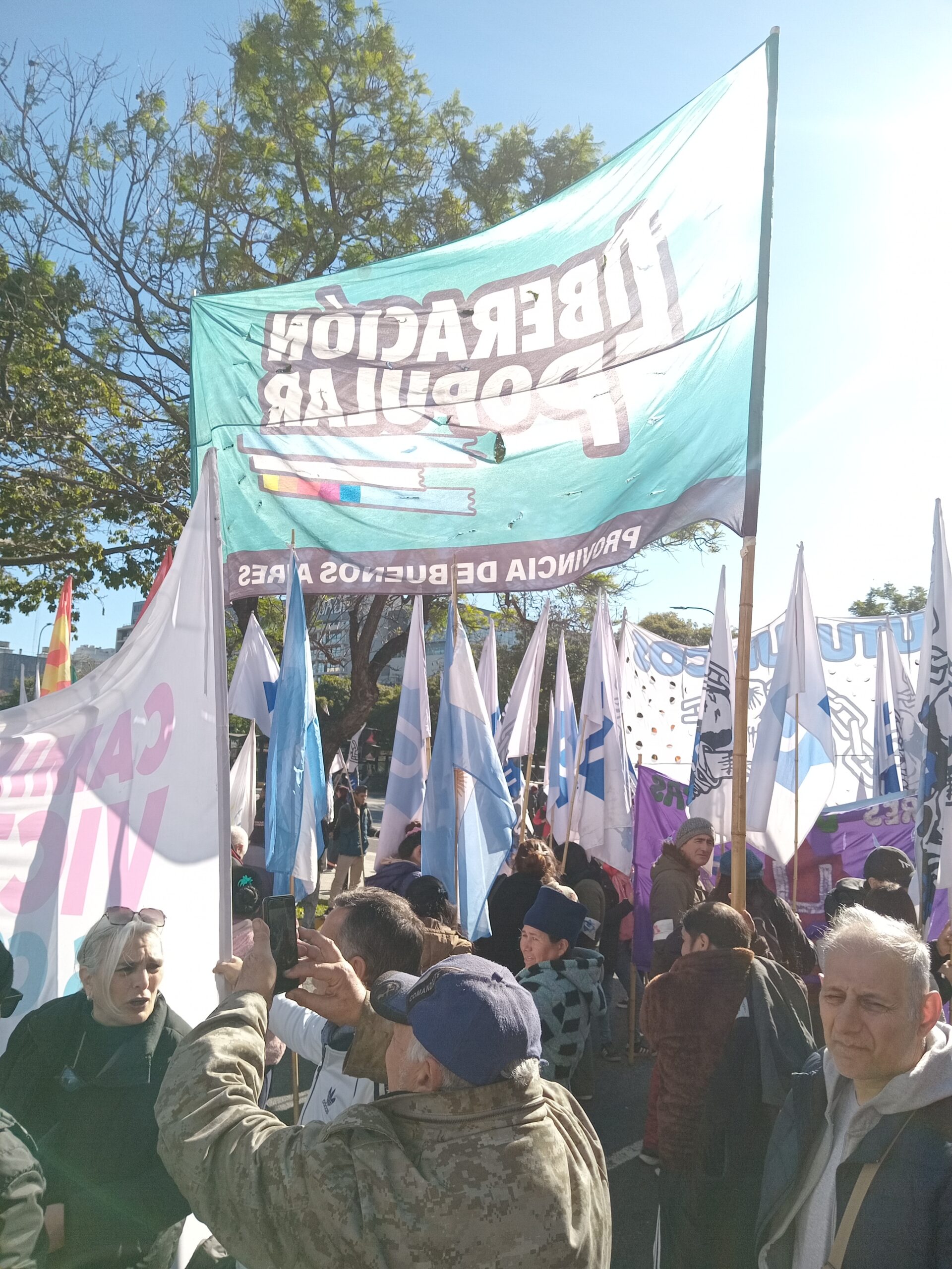 En la Avenida se fue reuniendo la columna del Movimiento Derecho al Futuro (MDF) conducido por Axel Kicillof. Allí estuvimos con Liberación Popular y el Comunismo Revolucionario. Además del gobernador bonaerense, estuvo presente el gobernador riojano Ricardo Quintela. Y también rechazaron la sentencia Gildo Insfrán (Formosa), Gerardo Zamora (Santiago del Estero), Sergio Ziliotto (La Pampa) y Gustavo Melella (Tierra del Fuego).