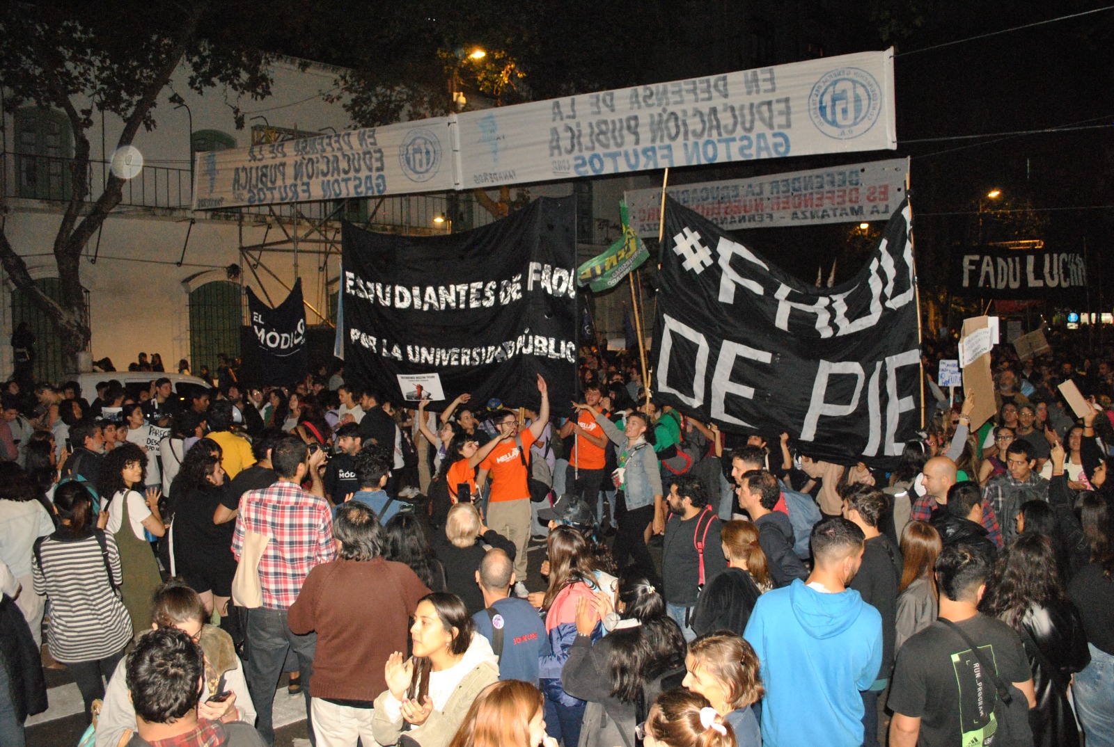 En FADU, desde La Corriente y AGD, impulsamos junto con las demás agrupaciones (Módulo-Cámpora, Auge-Barrios de Pie, Mella-Patria Grande, CEPA-PCR) y cátedras de un diverso arco político, siete aplausazos masivos. También participaron agrupaciones trotskistas, con ciertos límites para integrarse unitariamente y ubicar en el blanco a Milei sin atacar por igual al gobierno anterior, al peronismo y los rectores en su conjunto.