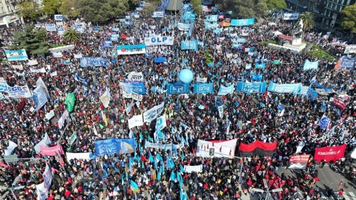 Convocada desde la UTEP, desde temprano del domingo 7 comenzó la marcha desde la iglesia de San Cayetano en Liniers bajo la consigna “Paz, Pan, Techo, Tierra y Trabajo”. La masiva movilización recorrió toda la capital y confluyó en un acto en la Av. 9 de Julio pasadas las 14hs, que se desbordó con las miles de compañeras y compañeros de las organizaciones.