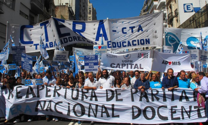 CTERA convocó a un paro nacional docente con un no inicio de clases a nivel nacional y una jornada de lucha y movilización para el este lunes 24/2. Los gremios docentes enrolados en la CGT (UDA, AMET, CEA) también se convocaron a un paro para este lunes 24/2 y para el 5/3 coincidiendo, este último con el inicio de clases en diez provincias. El principal reclamo de las centrales sindicales es la restitución de los fondos nacionales que garanticen salario docente digno, buenas condiciones edilicias y las partidas para comedores escolares.