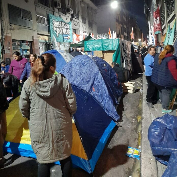 Del lunes 31 de octubre al jueves 3 de noviembre se realizó una protesta de cuatro días, que arrancó con una manifestación y siguió con la permanencia en las puertas de la Secretaria de la Economía Social (SES) del Ministerio de Desarrollo Social de la Nación. La jornada fue convocada por el agrupamiento conformado por Liberación Popular, el MP La Dignidad, la Paritaria Social y Popular, el MTD Aníbal Verón y Soberanxs, todas fuerzas que venimos integrando el Frente de Todxs desde la postura de rechazo al acuerdo del FMI y los recortes que impone.